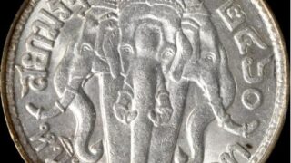 【NGC AU58】BE2460 (1917) タイ王国 BAHT銀貨